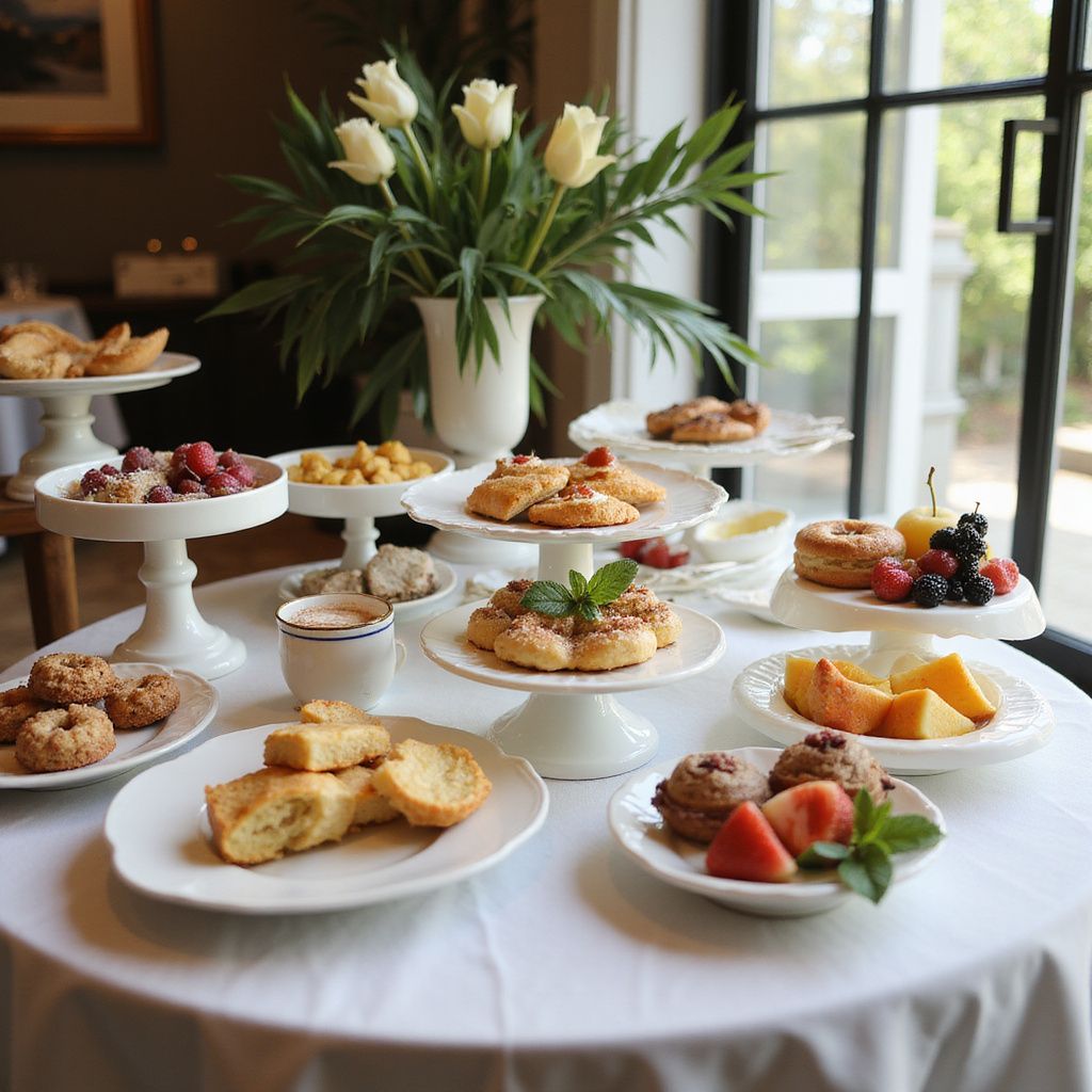 Our food styling features sleek white ceramic risers that add height and dimension to your displays. We arrange desserts, grazing boards, and cocktail spreads with attention to color and balance.